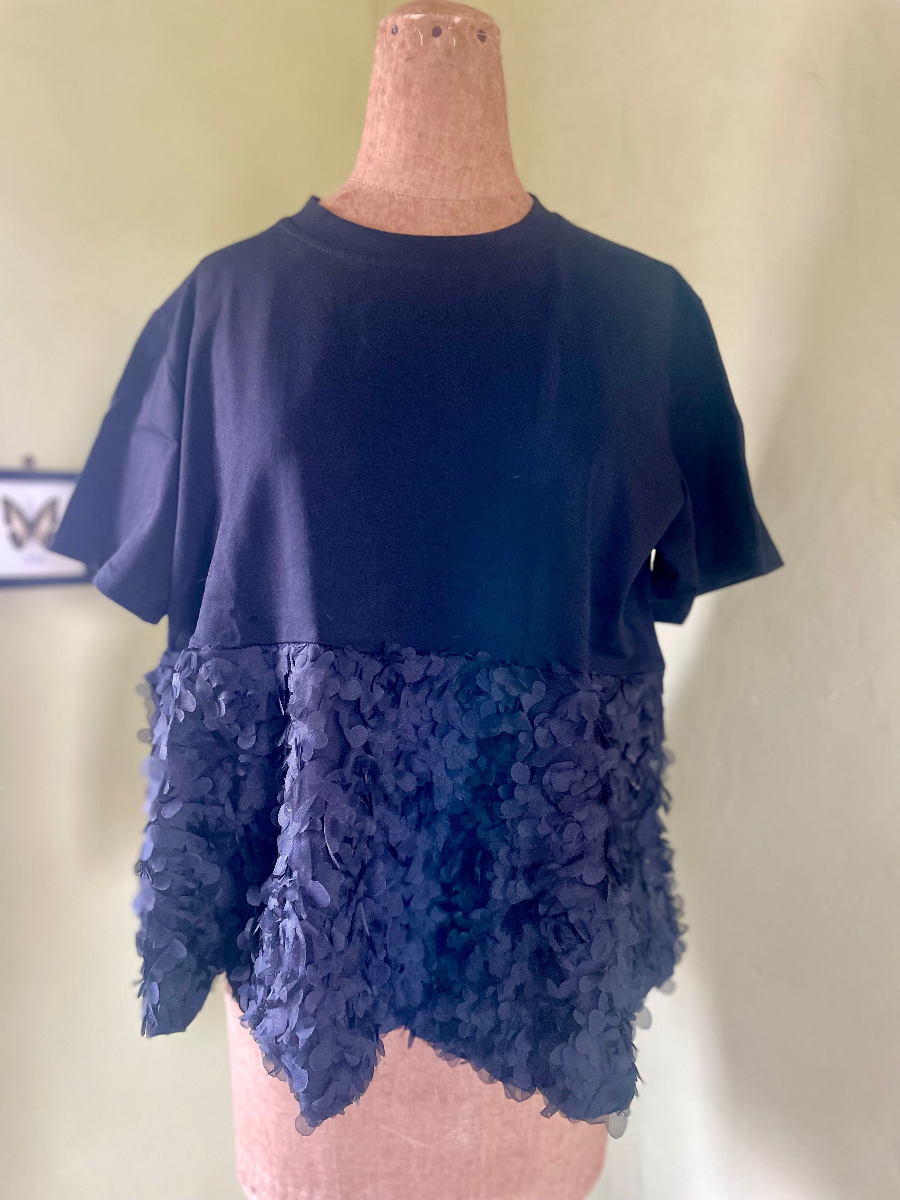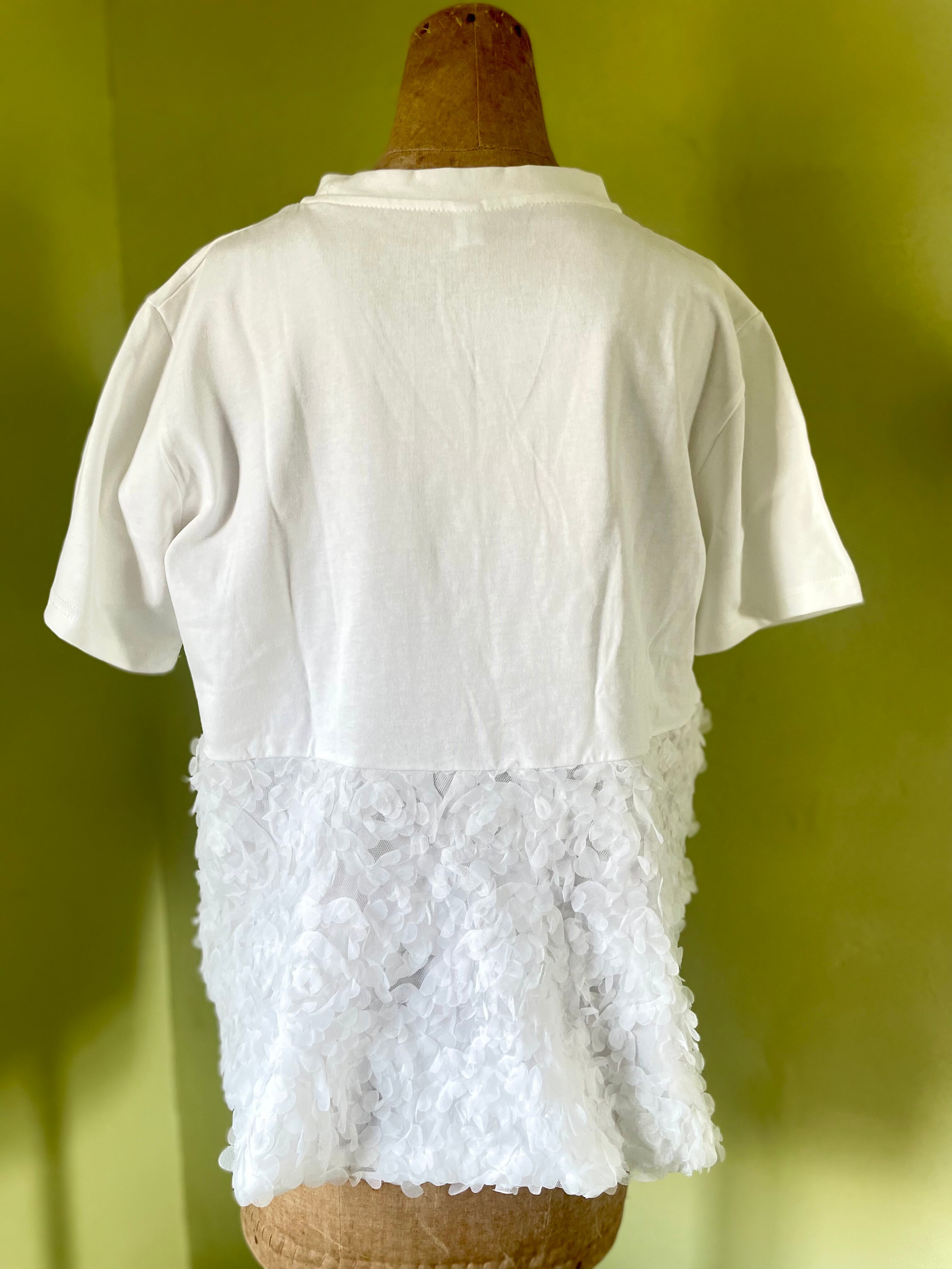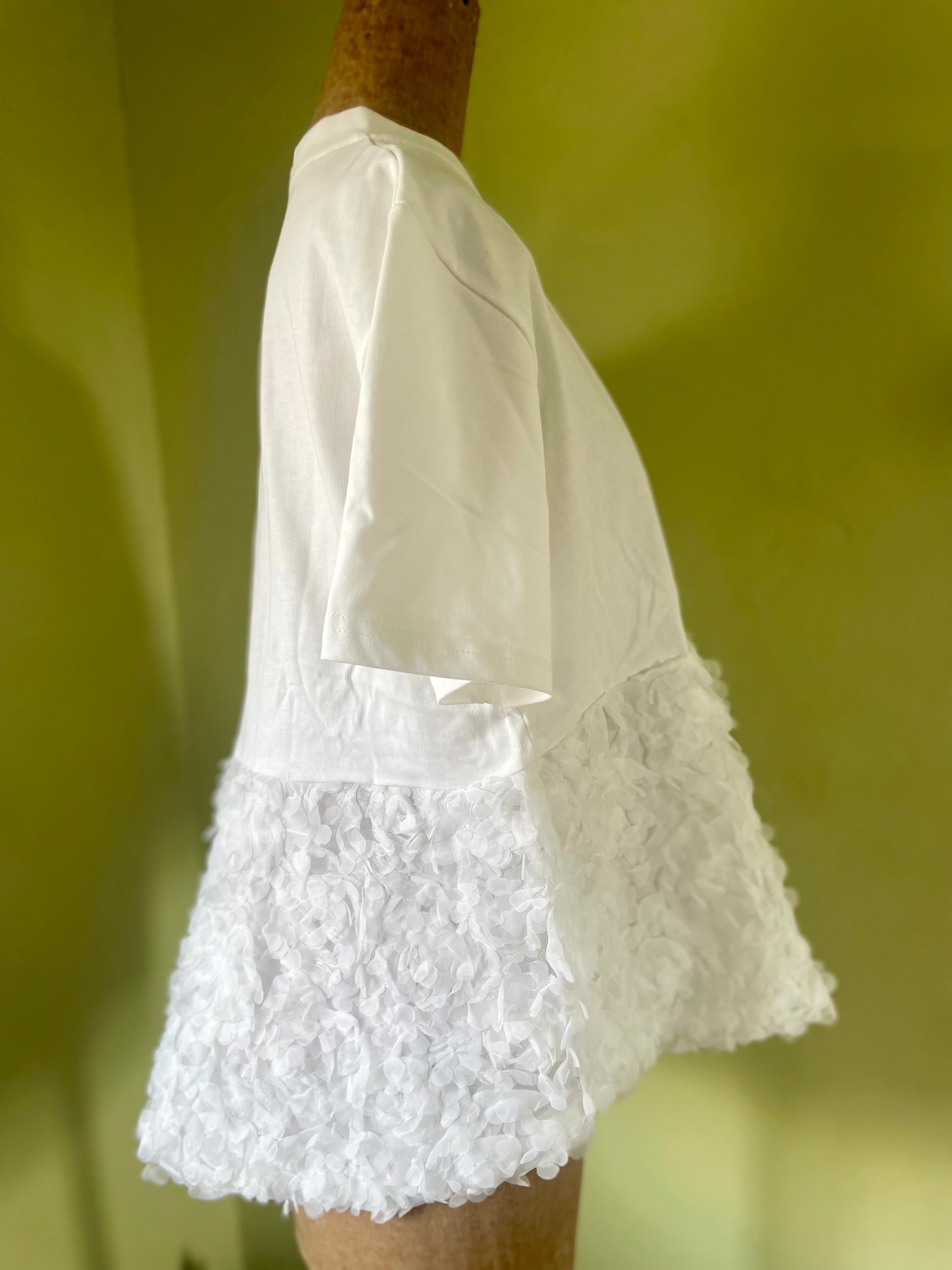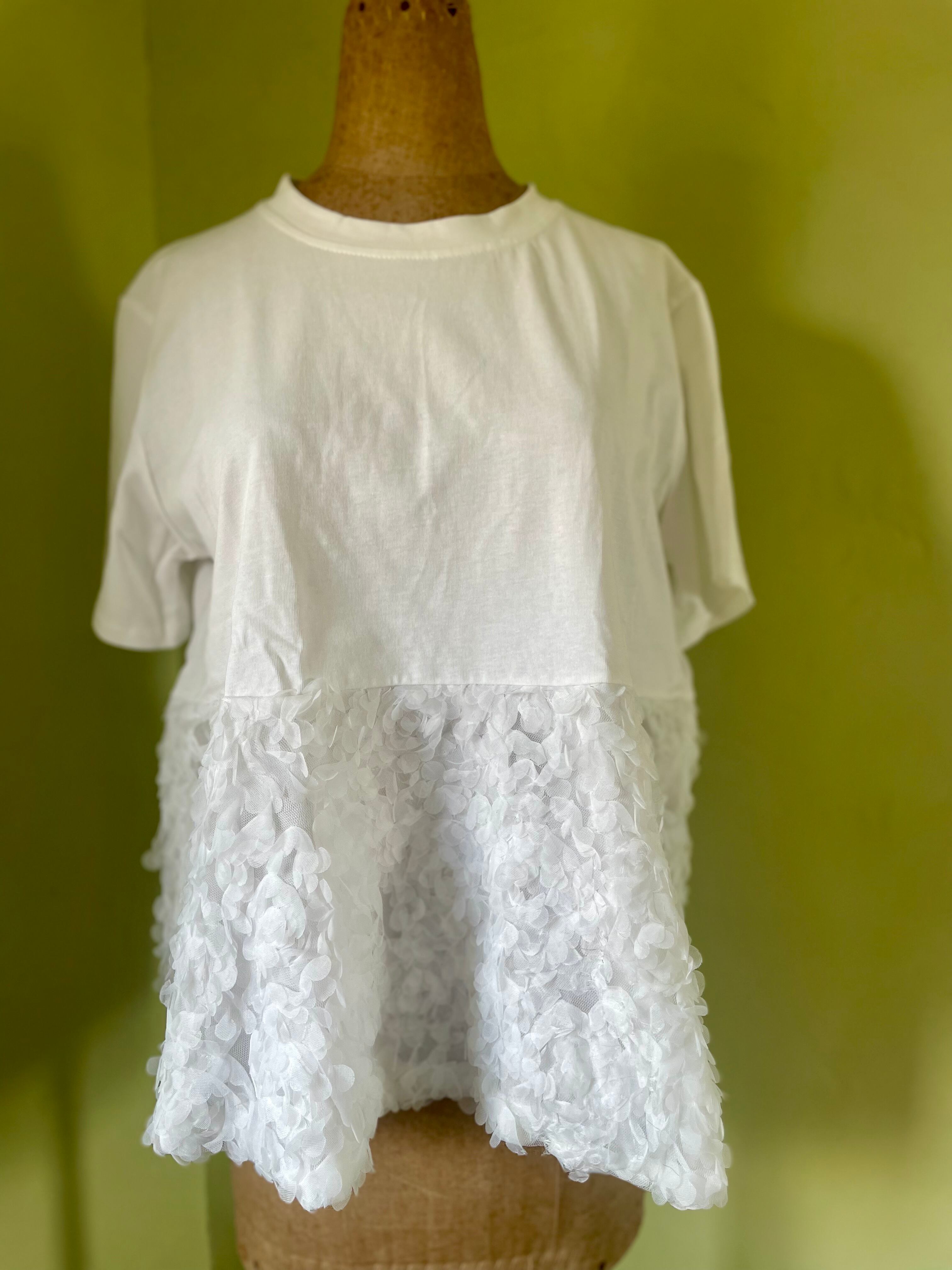 海外 輸入 白 white 黒 Black Tシャツ 半袖 夏 花 切り替え トップス